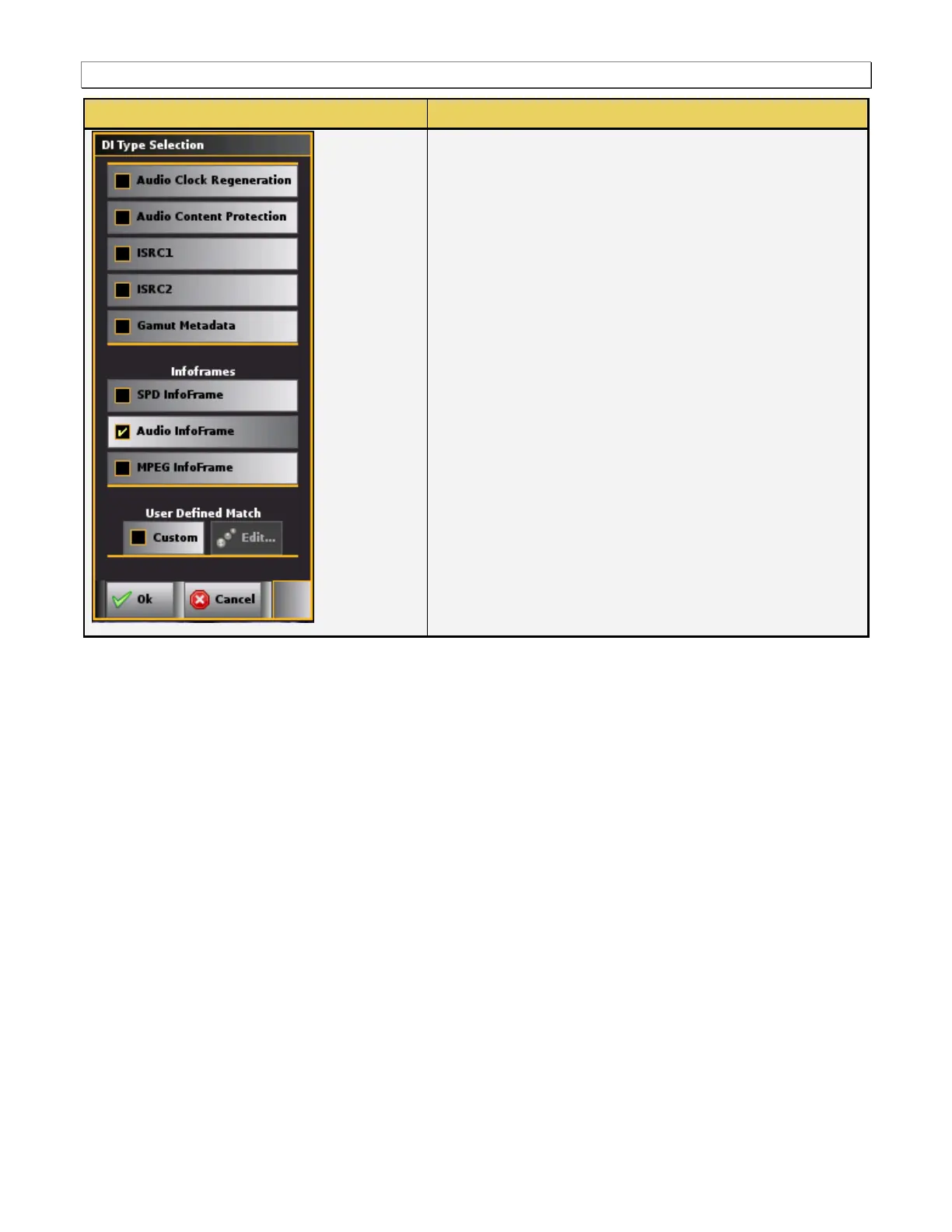 Audio Infoframe – Selects the Audio Infoframe panel.