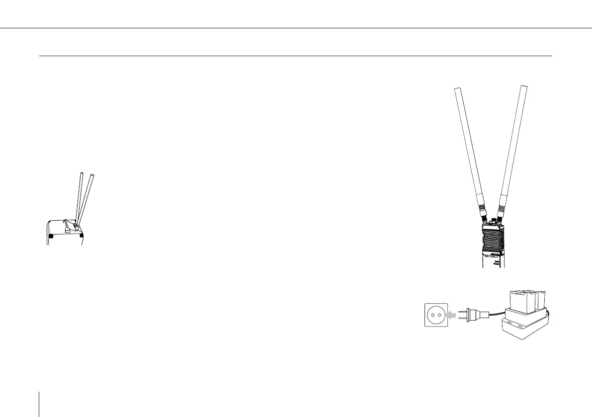 2. Connect both antennas to the handheld main part. Lock them with the screw –