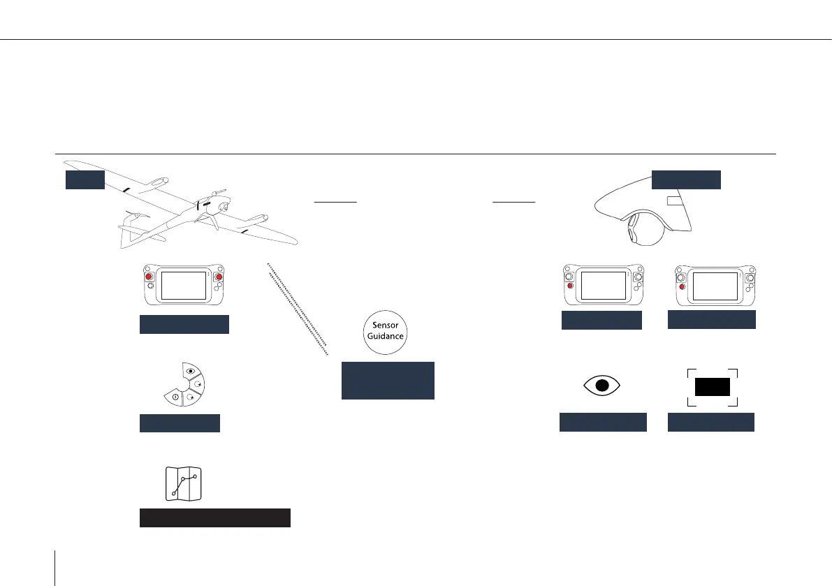 The UAV and the sensor can be controlled individually. There are four options to control the ight path of the UAV and four