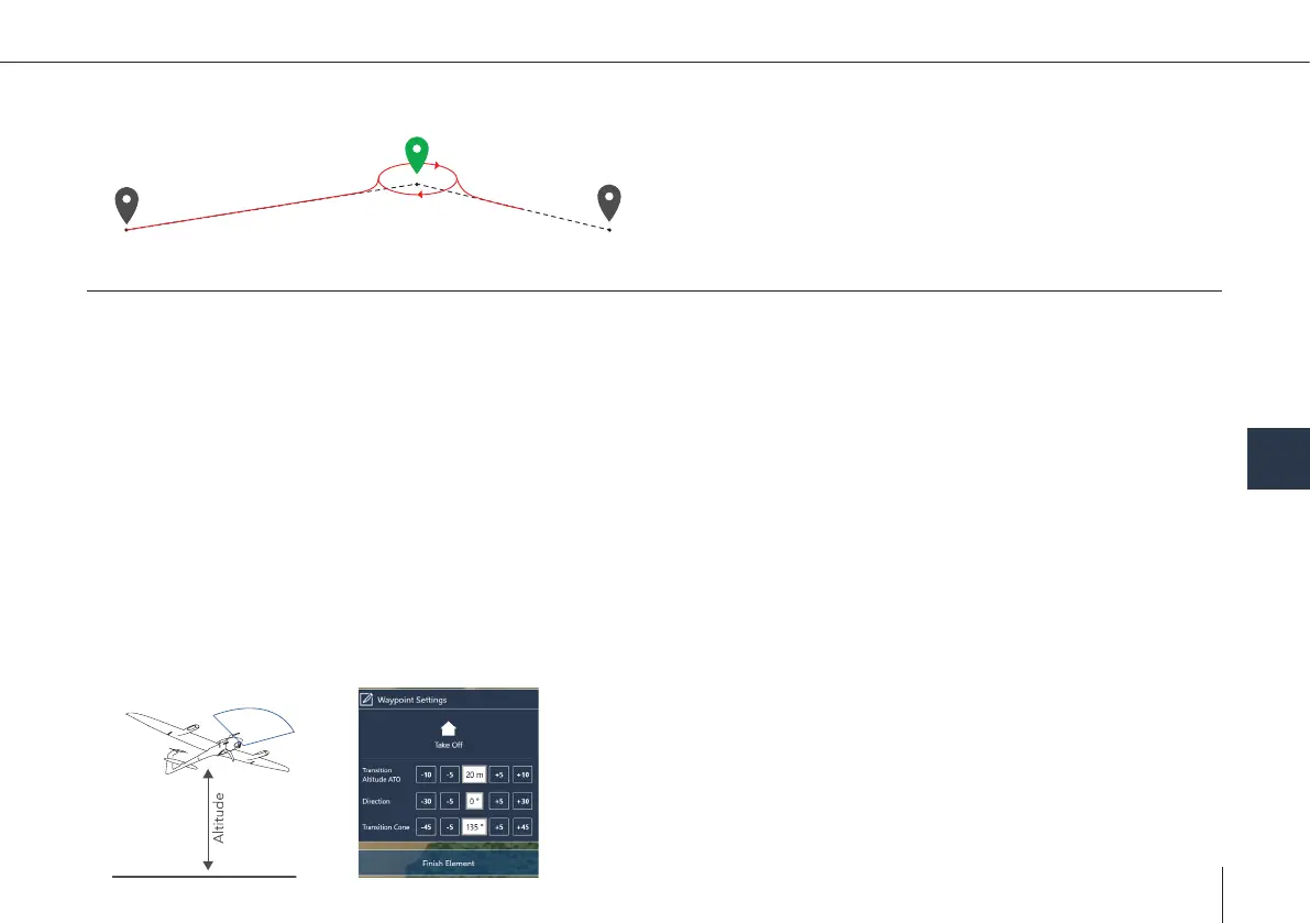 • Select the Take-Off or the Retransition location on the map or select Take-Off/Landing in the left section in order to set the