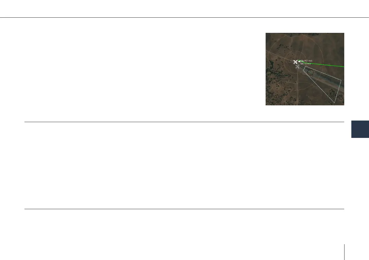 • When the gimbal target position on the ground moves into the inner circle, the UAV will