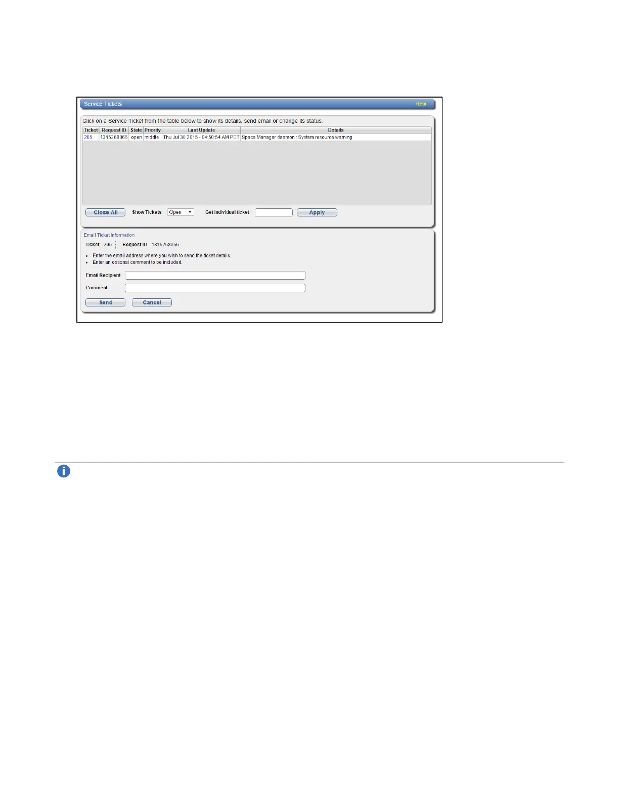 Close a service ticket if the problem the caused the system to generate the ticket is resolved. You can also