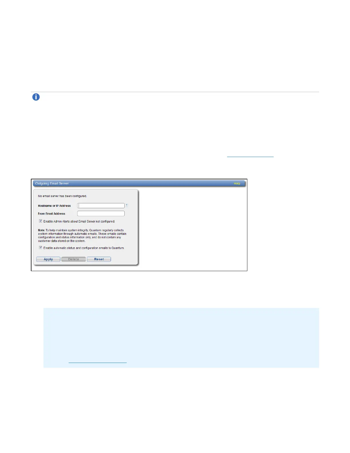 The Server page allows you to specify the server for outgoing e-mail. The DXi4700 cannot send e-mail