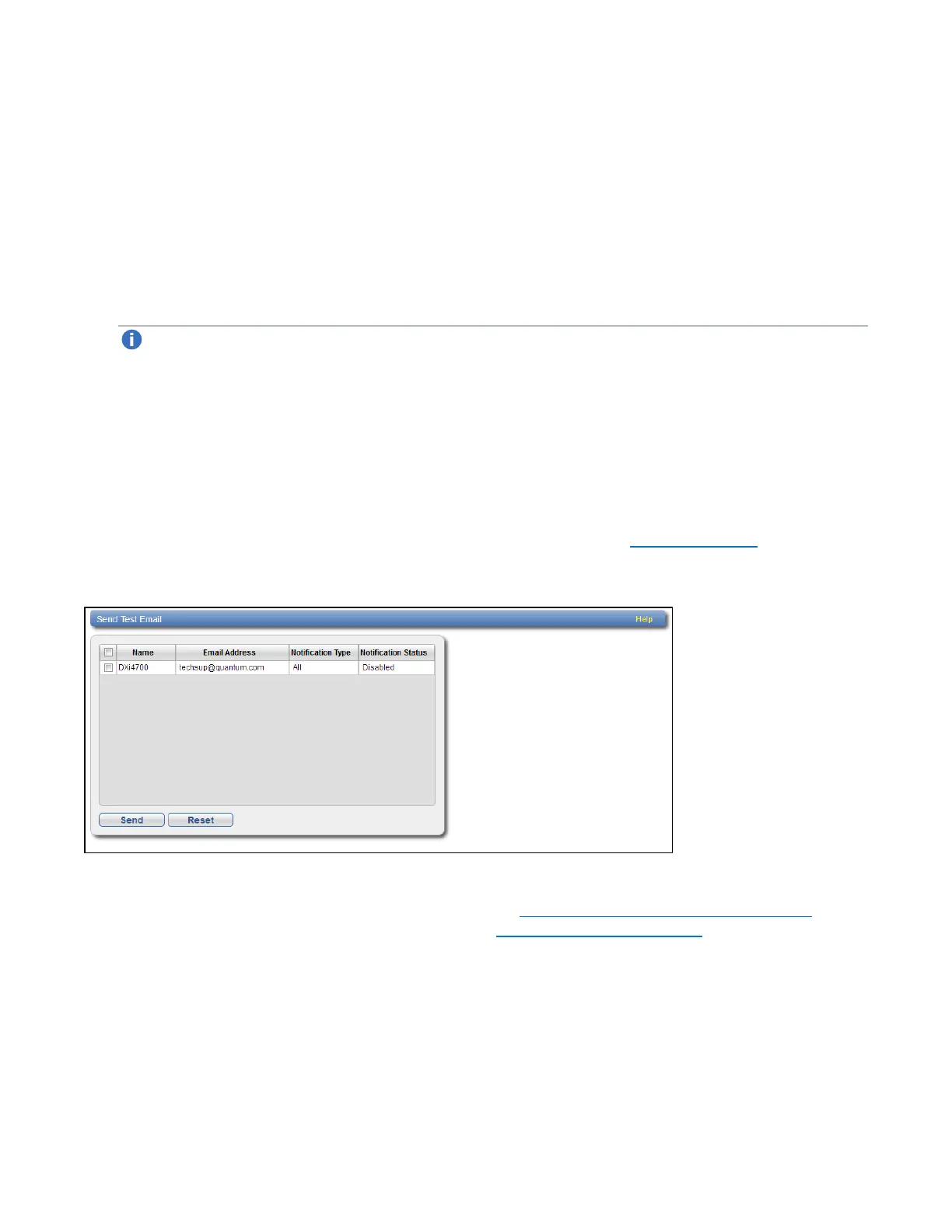 The Email Test page allows you to send a test e-mail to verify that e-mail notifications are correctly