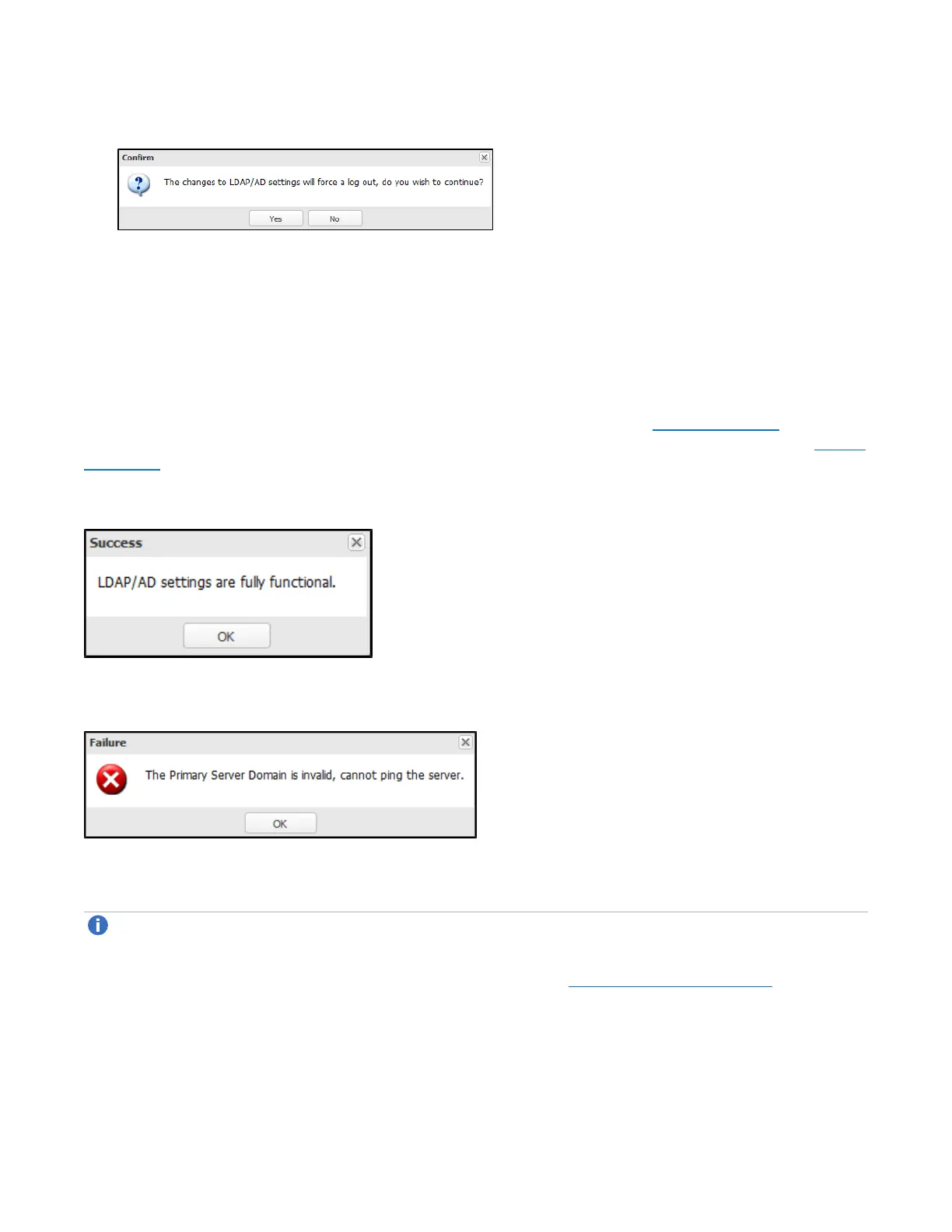 Note: User LDAP/AD setting changes must first be applied before being tested.