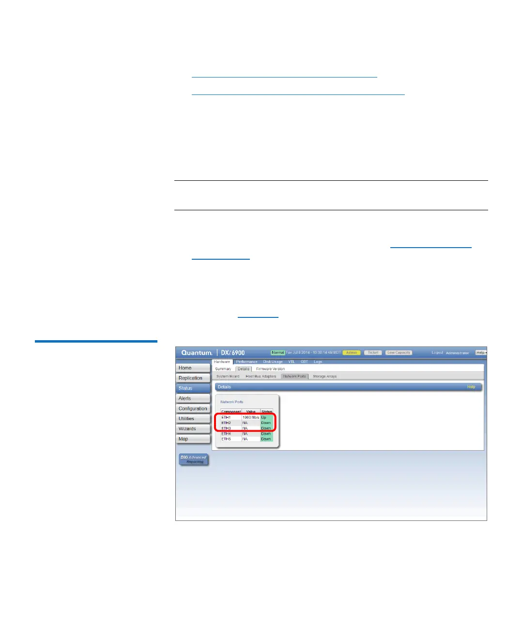 3 Under Network Ports, note the status of ports ETH1, ETH2, and
