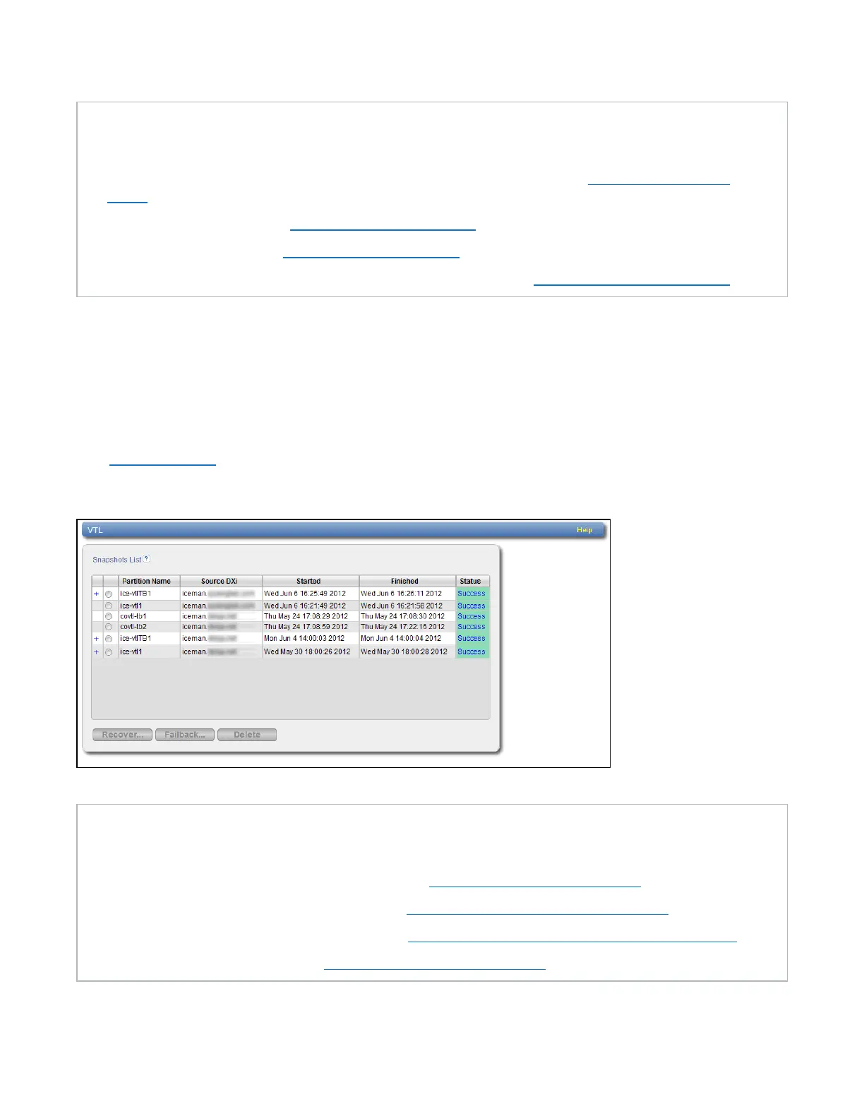 l View received snapshots and recover, failback, or delete snapshots (see Received Snapshots