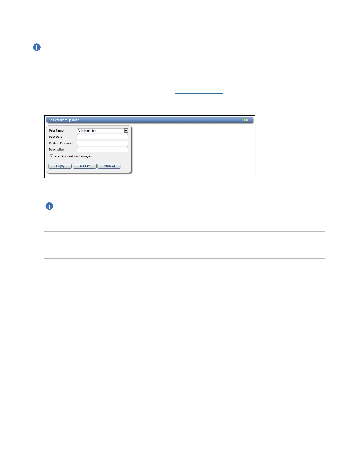 To delete a workgroup user or share administrator, select the user or administrator and click Delete.You