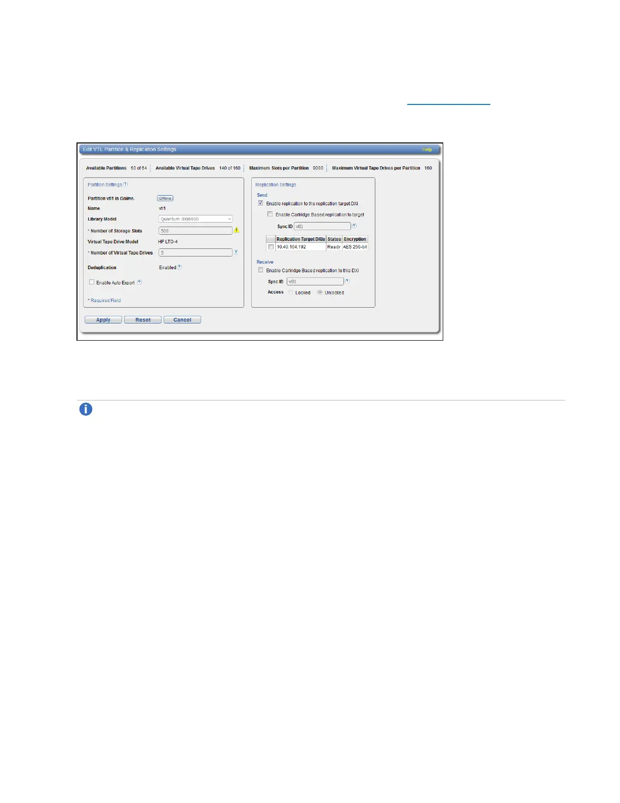 The EditVTLPartition&ReplicationSettings page displays (see Figure 144 below).