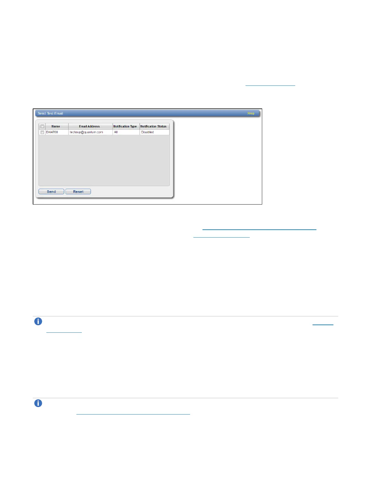 Note:To enable the DXi6900 to send e-mail, you must specify an outgoing e-mail server (see Server