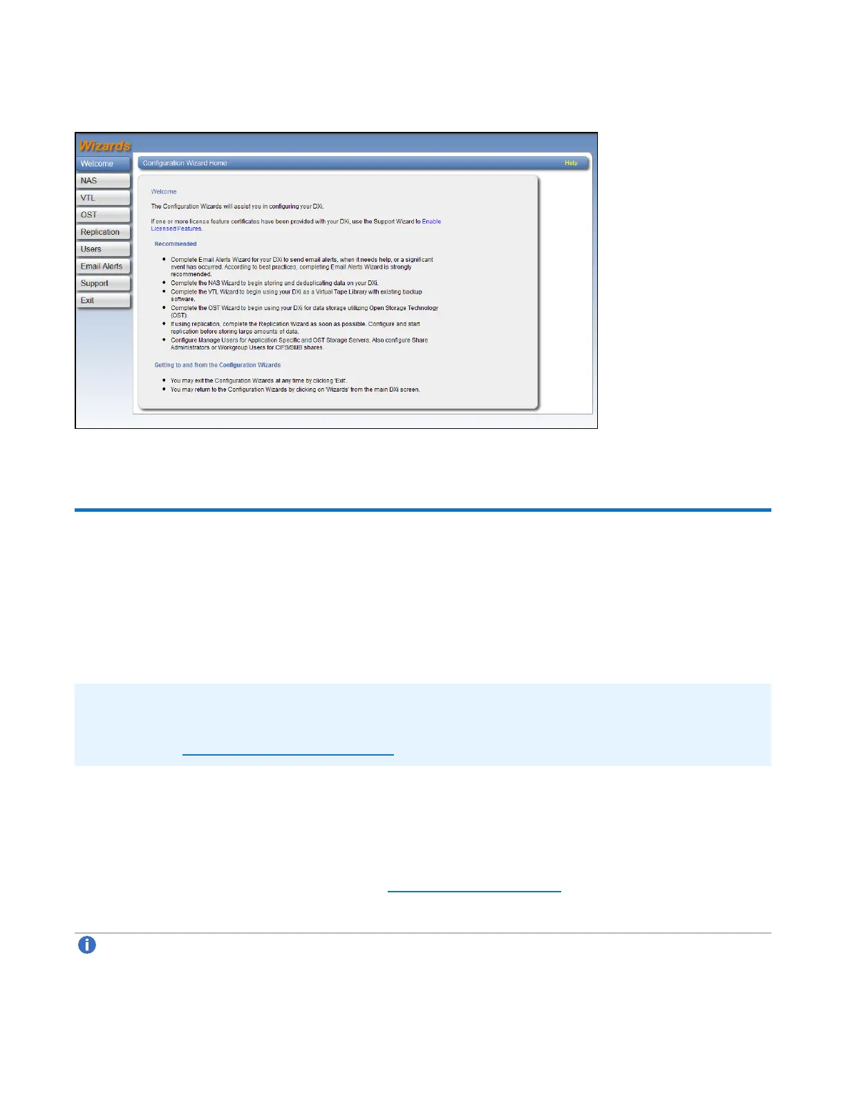 The NAS wizard provides guided assistance for configuring the DXi6900 as a NAS (Network Attached