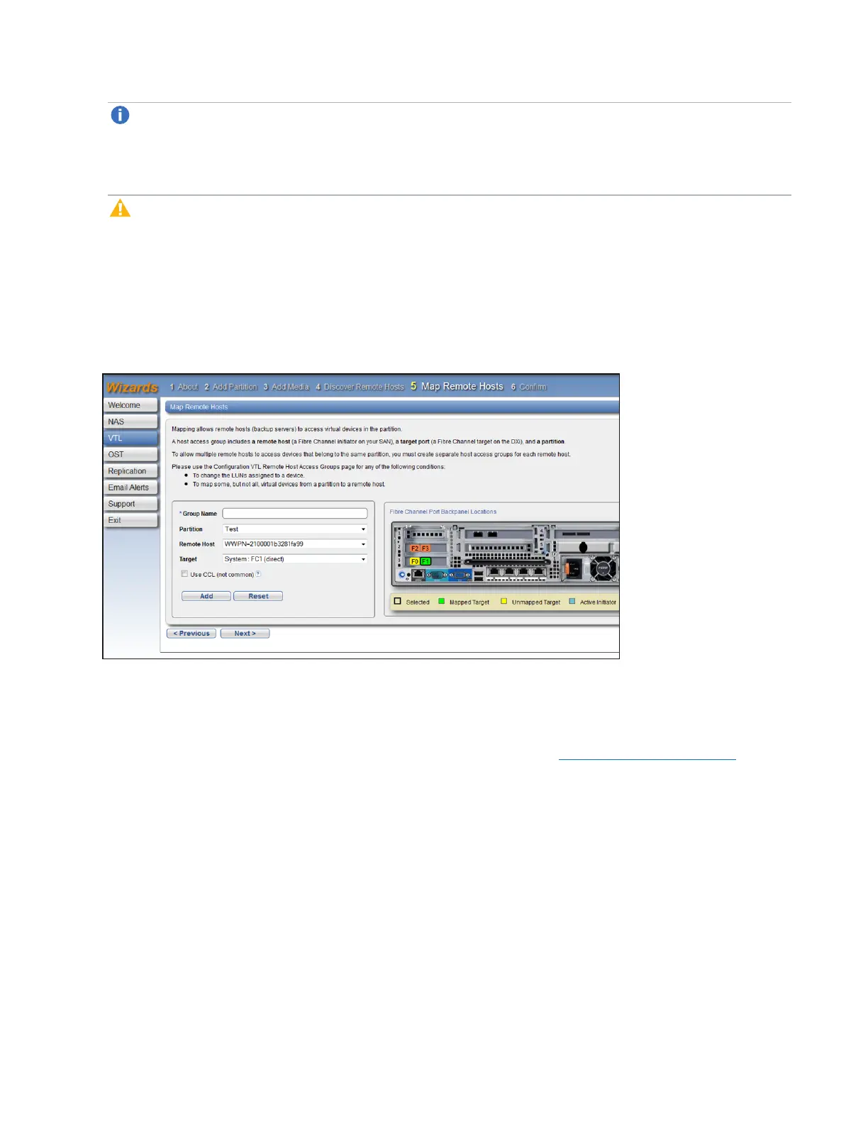 2. To make changes to a VTL partition, media, or host access group you added, first select the item and