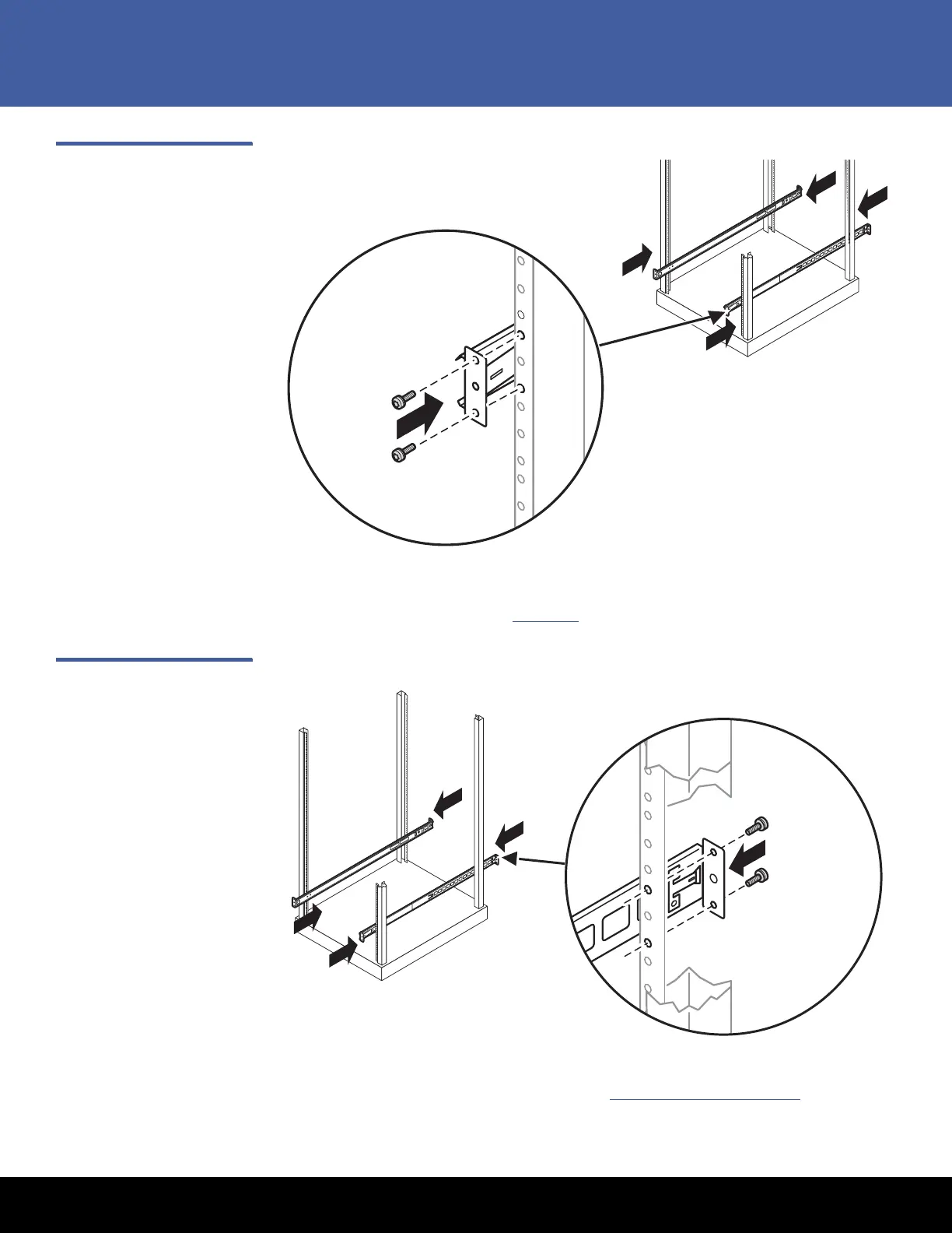 3 Extend the rack rails past the rear vertical mounting bars and attach the back