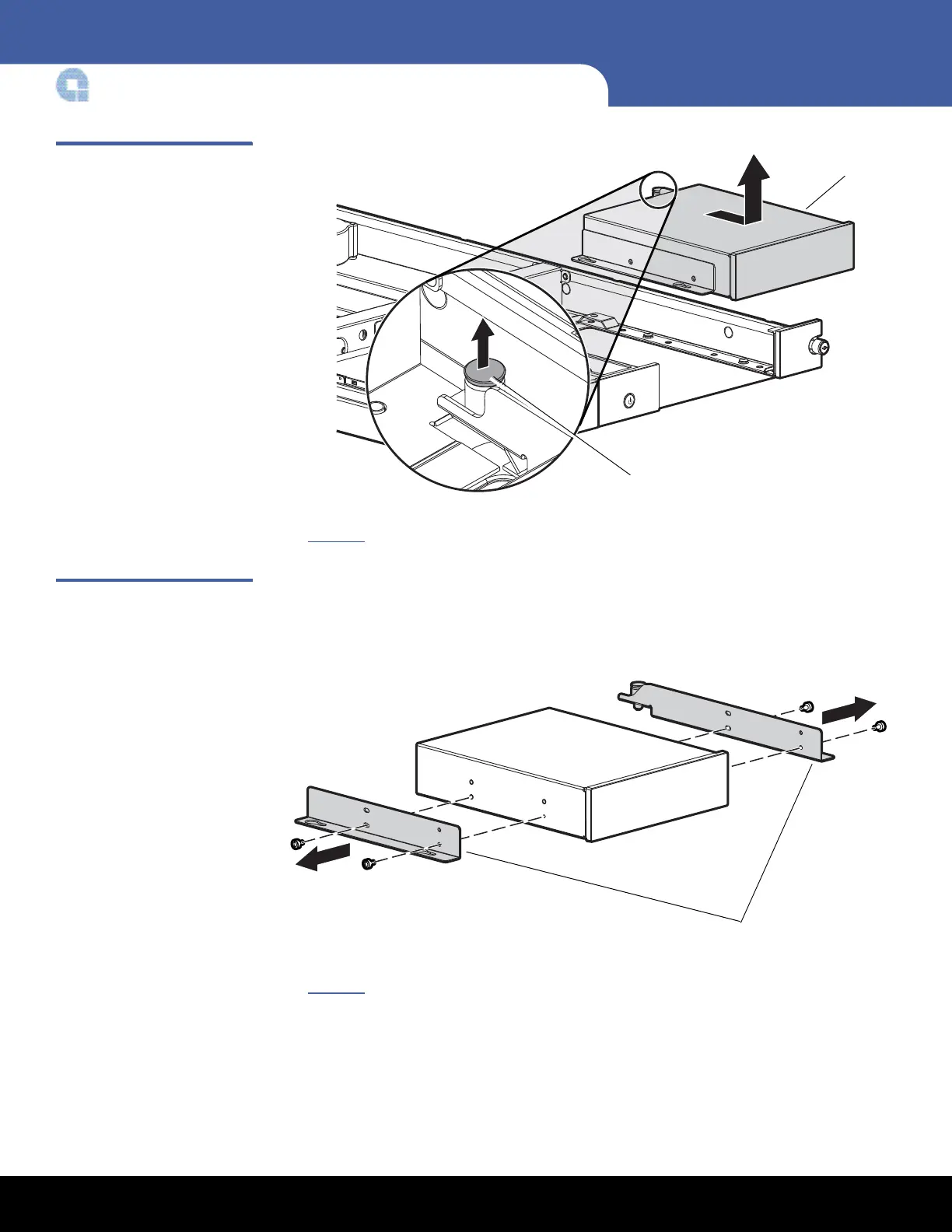 2 Remove the screws securing the mounting brackets to the tape drive blank (see