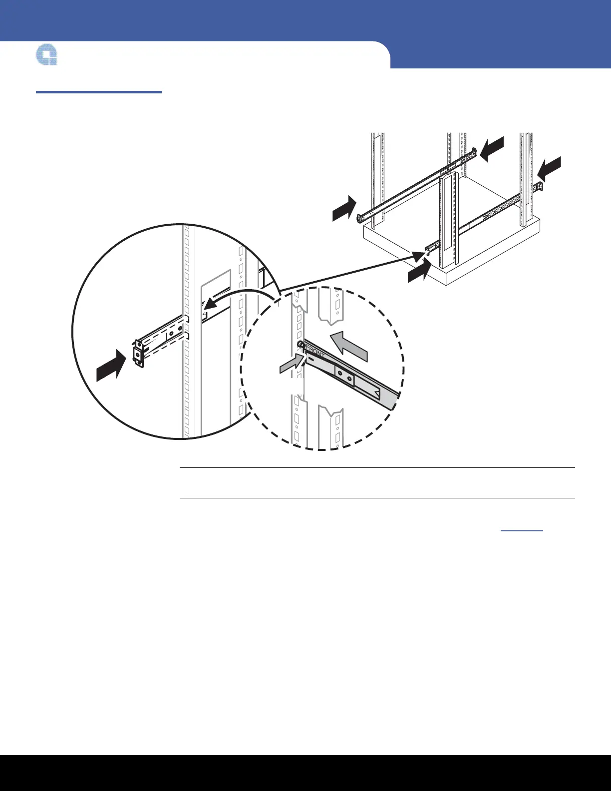 2 Extend the rack rails past the rear vertical mounting bar and insert the pins in the