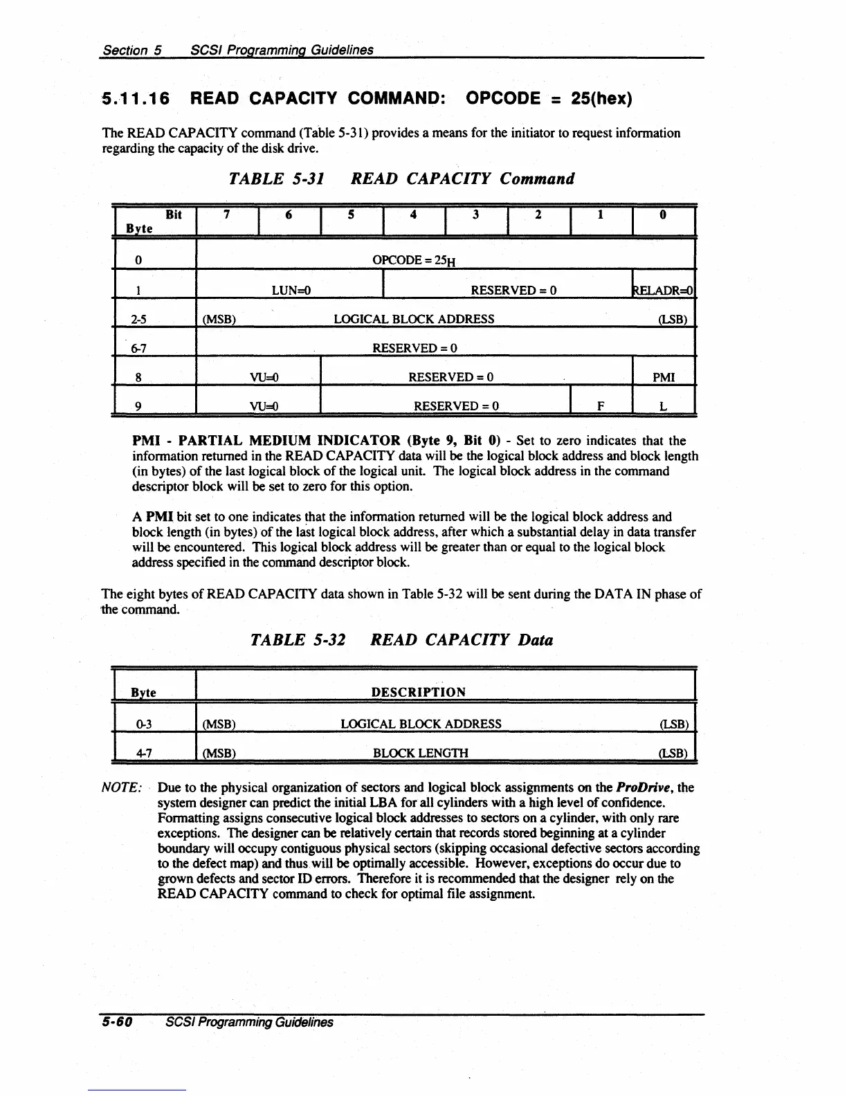READ CAPACITY COMMAND: OPCODE = 2S{hex)