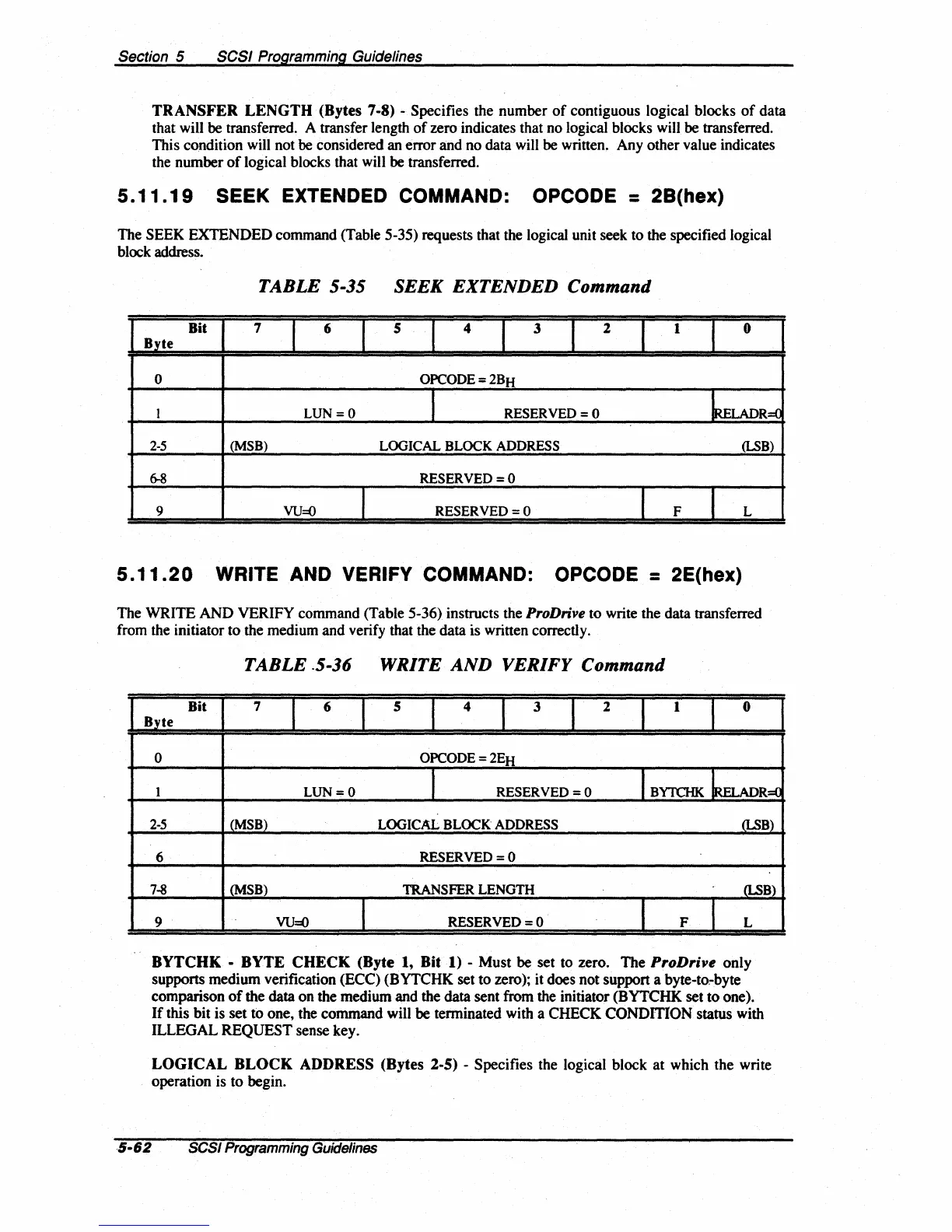 VERIFY command (Table 5-36) instructs the ProDrive to write the data transferred