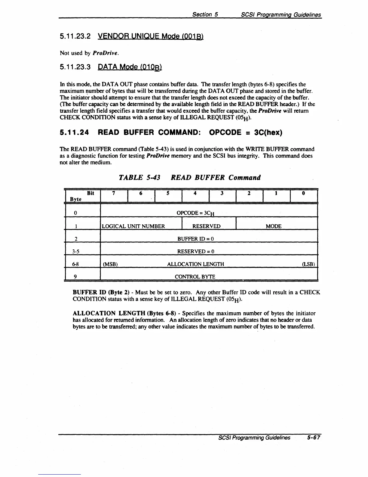 The READ BUFFER command (Table 5-43) is used in conjunction with the WRITE BUFFER command