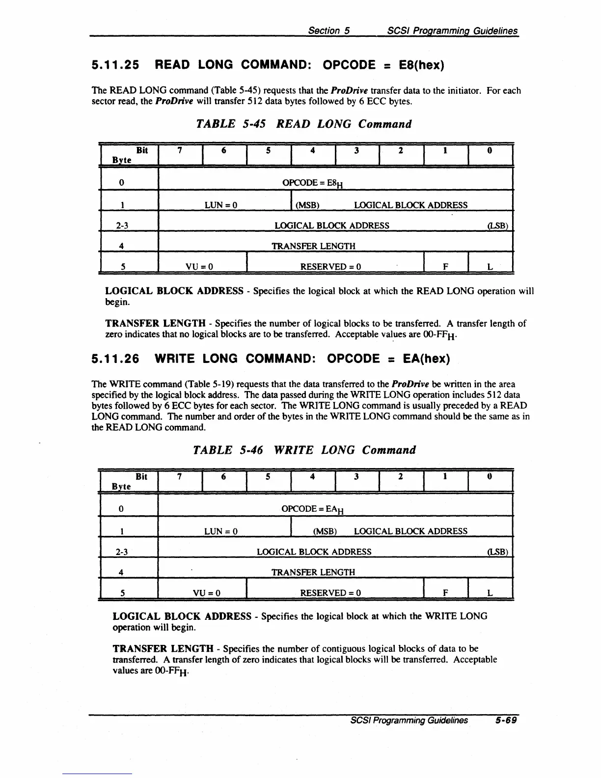 WRITE LONG COMMAND: OPCODE = EA(hex)