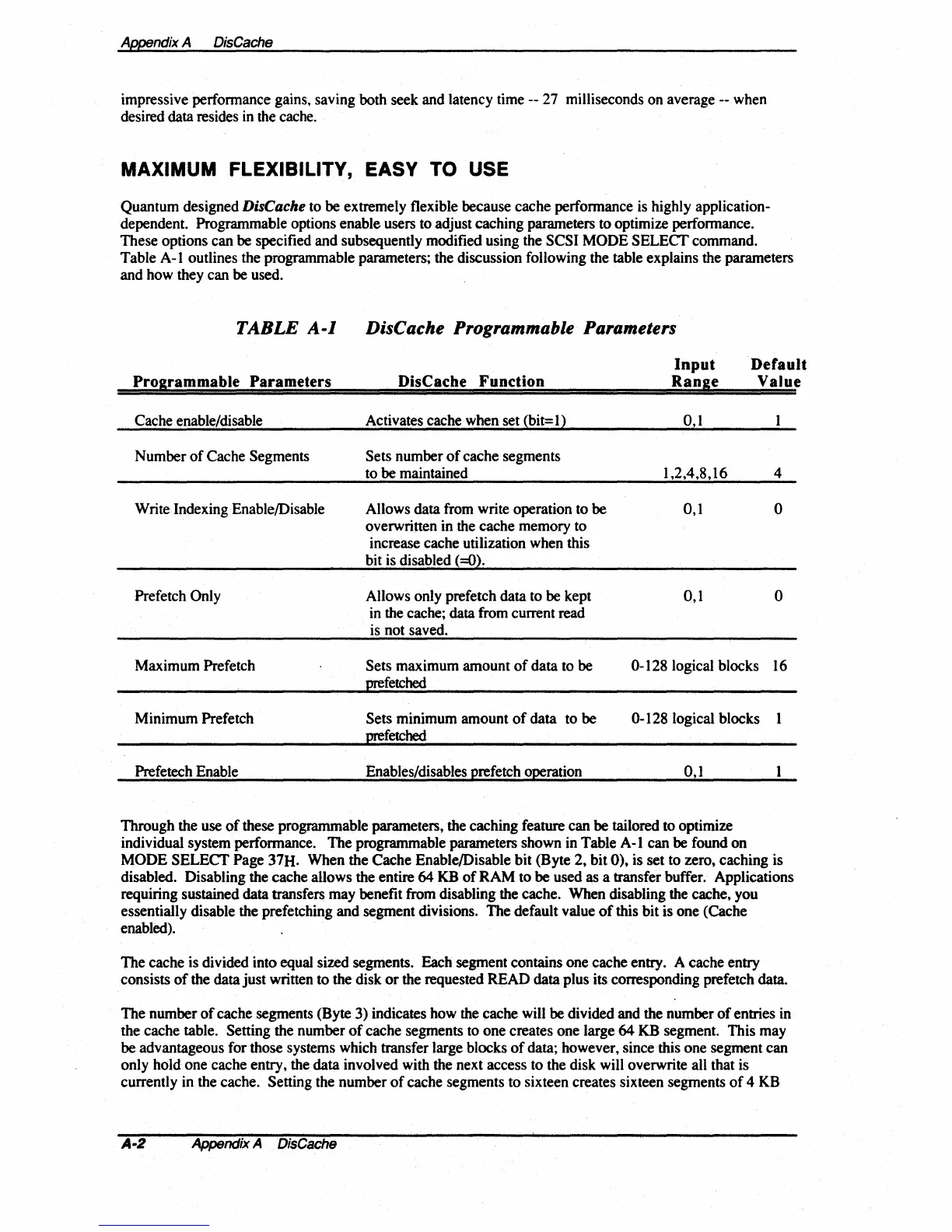 dependent. Programmable options enable users to adjust caching parameters to optimize performance.