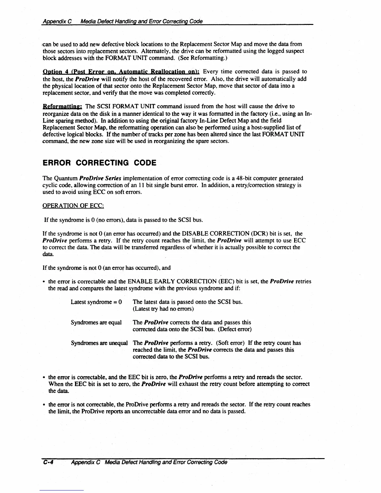 • the error is not correctable, the ProDrive performs a retry and rereads the sector.