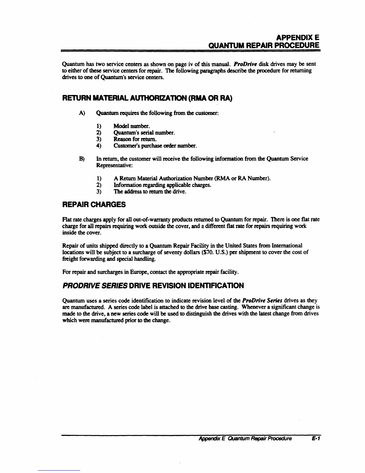 Flat rate charges apply for all out-of-warranty products returned to Quantum for repair. There is one flat rate