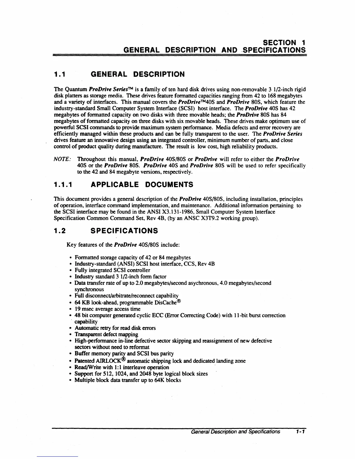 Small Computer System Interface (SCSI) host interface. The ProDrive 40S has 42