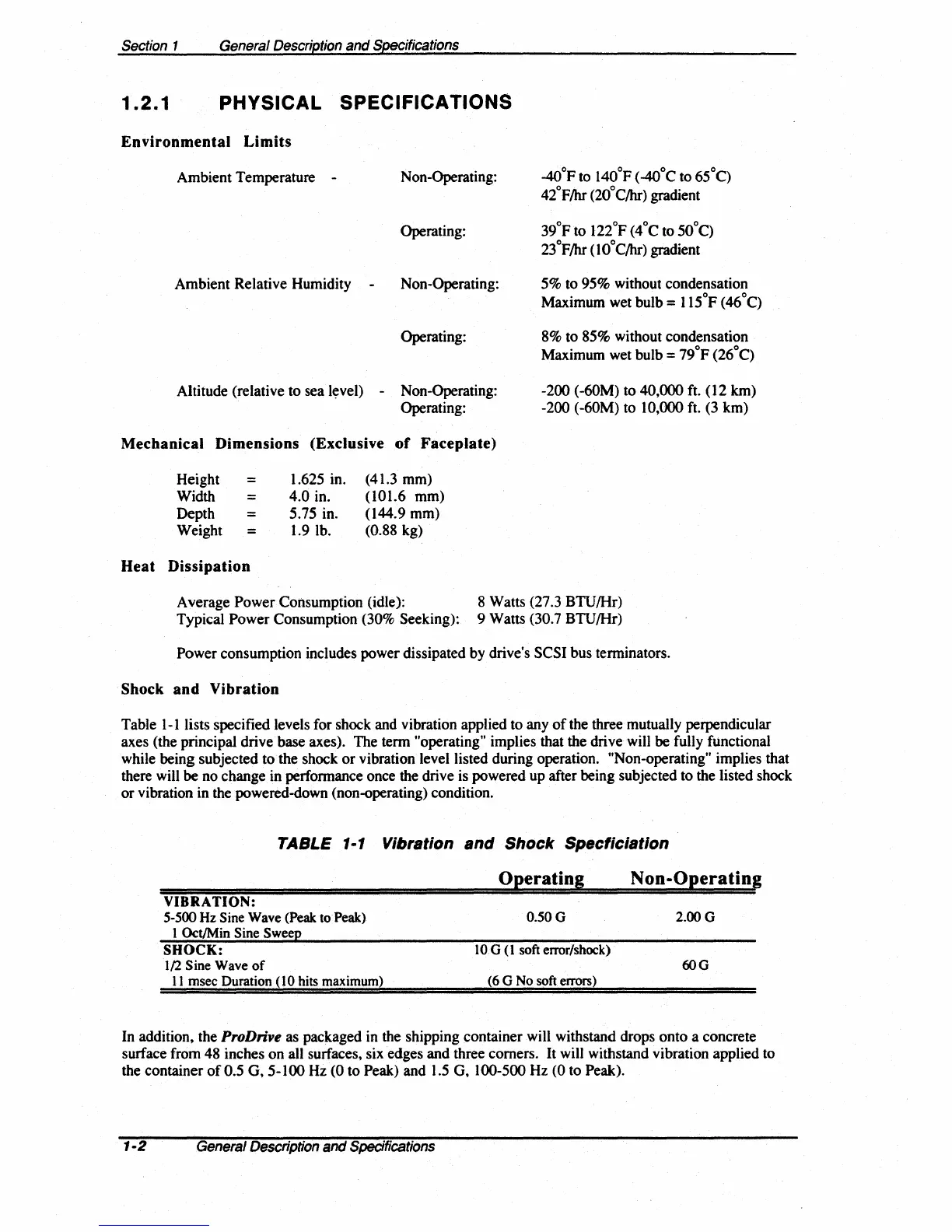 or vibration in the powered-down (non-operating) condition.