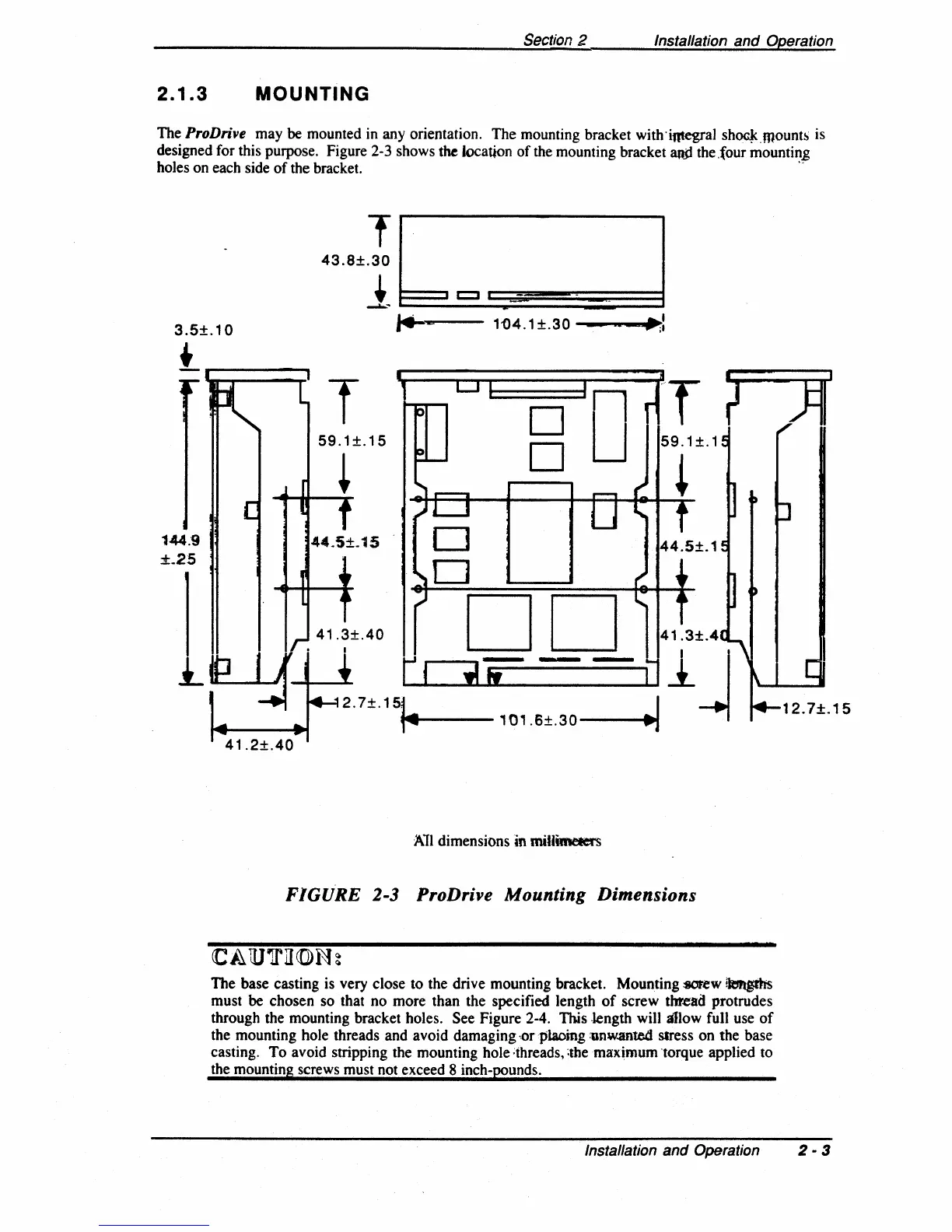 FIGURE 2-3 ProDrive Mounting Dimensions