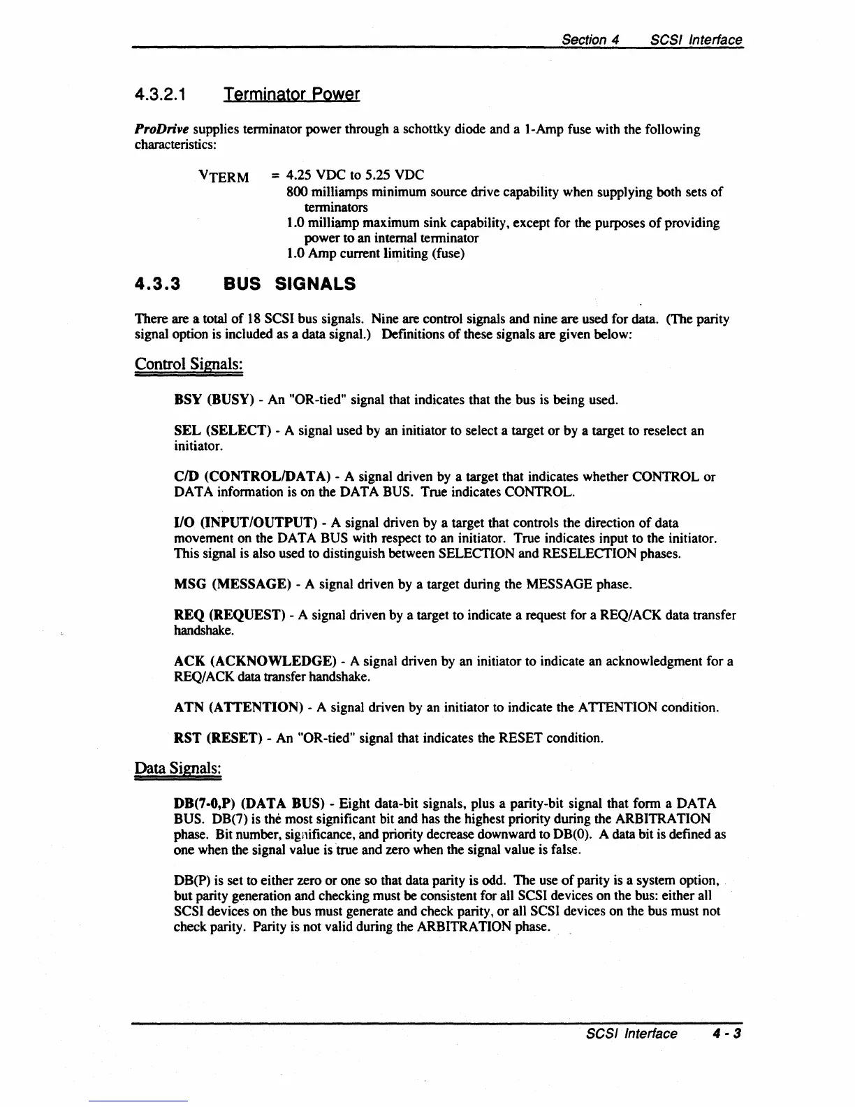 ProDrive supplies tenninator power through a schottky diode and a I-Amp fuse with the following