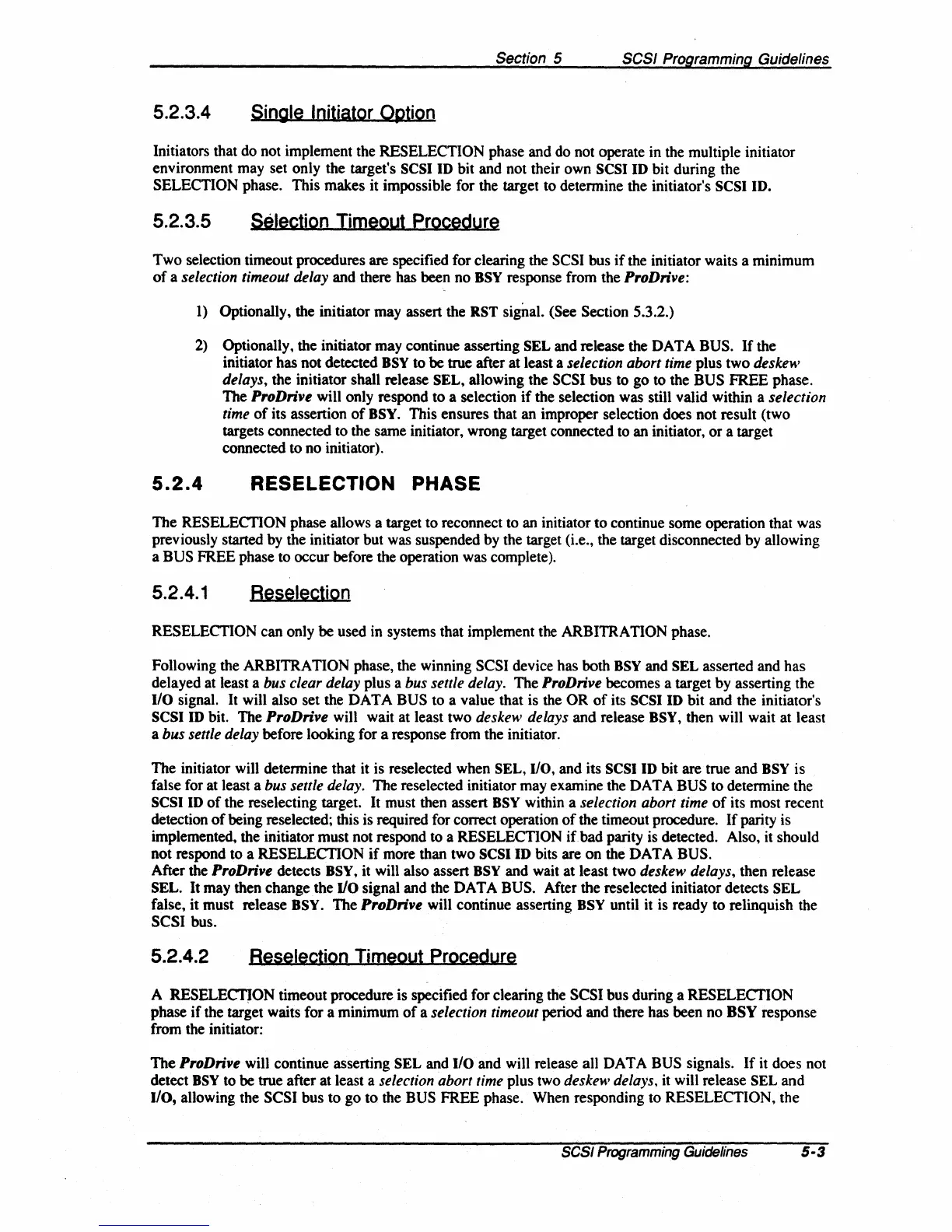 SCSI ID bit. The ProDrive will wait at least two deskew delays and release BSY, then will wait at least