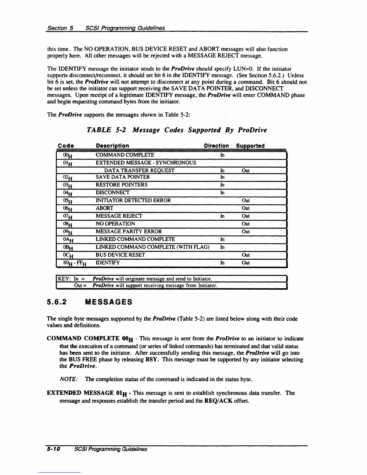 ProDrive supports the messages shown in Table 5-2: