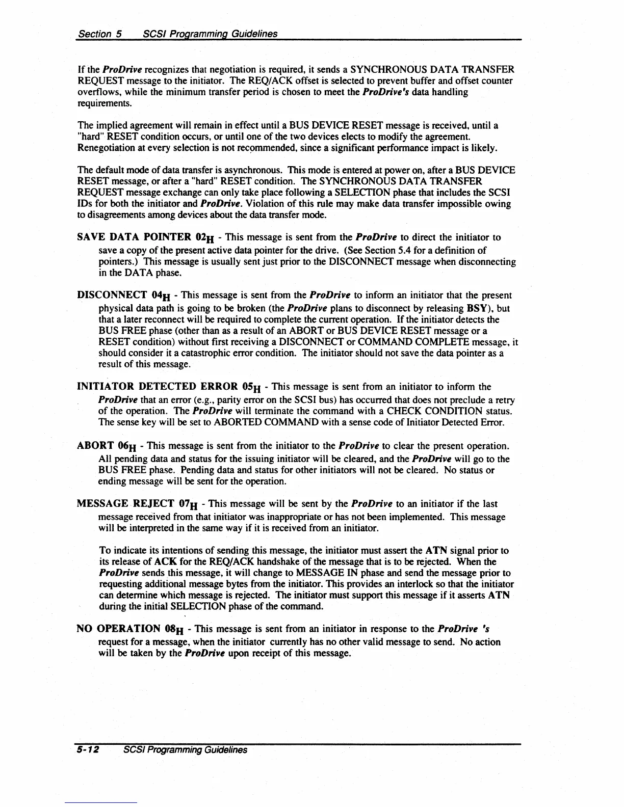 the ProDrive recognizes that negotiation is required, it sends a SYNCHRONOUS DATA TRANSFER