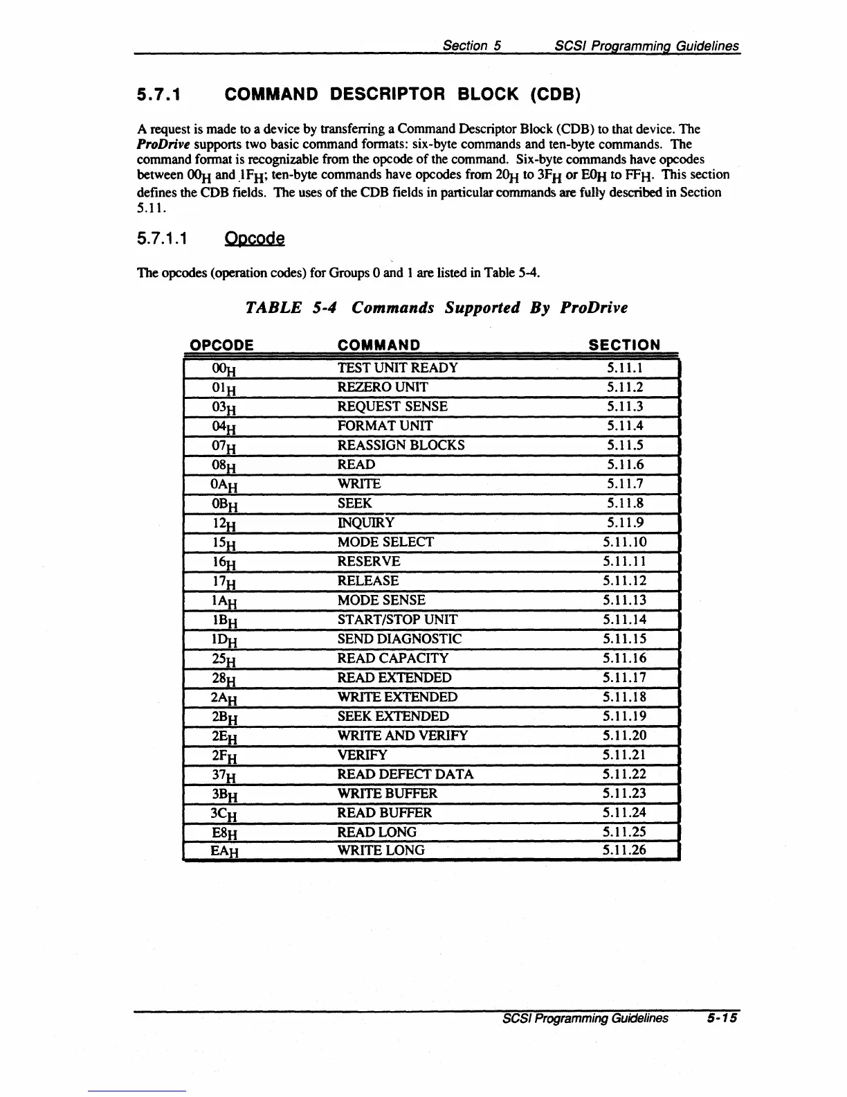 ProDrive supports two basic command formats: six-byte commands and ten-byte commands. The