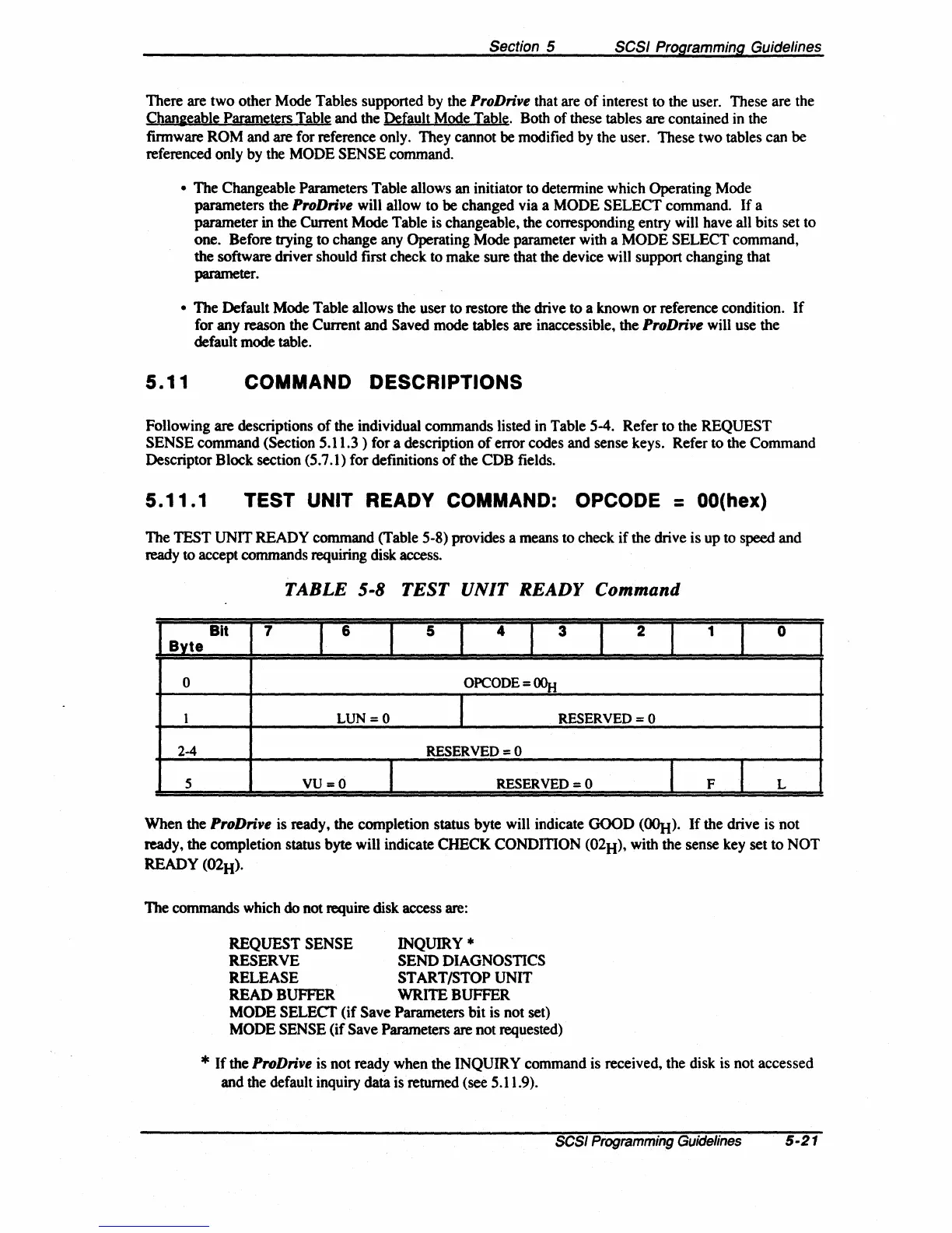 The TEST UNIT READY command (Table 5-8) provides a means to check