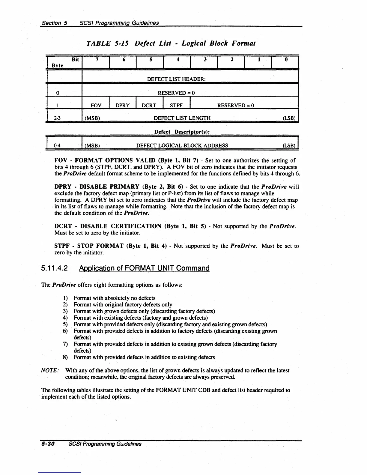 5.11.4.2 Agglication of FORMAT UNIT Command