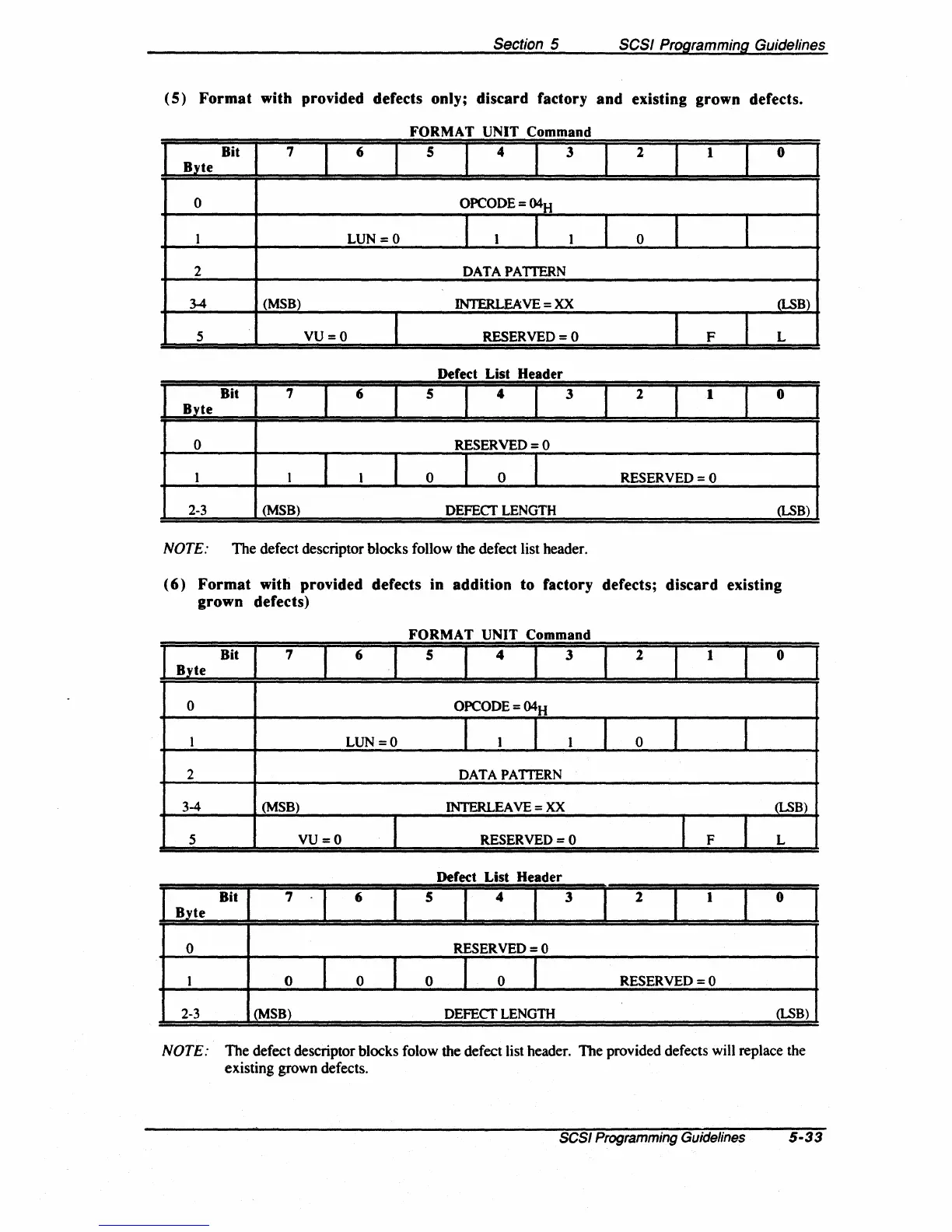 NOTE: The defect descriptor blocks folow the defect list header. The provided defects will replace the