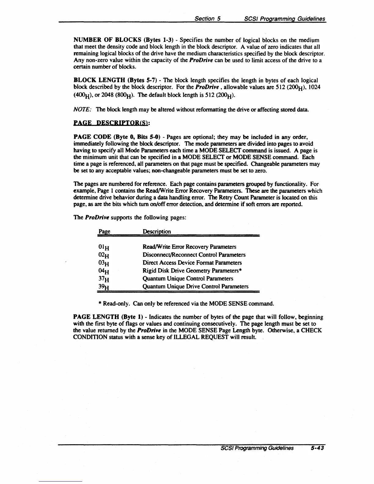 PAGE CODE (Byte 0, Bits 5-0) - Pages are optional; they