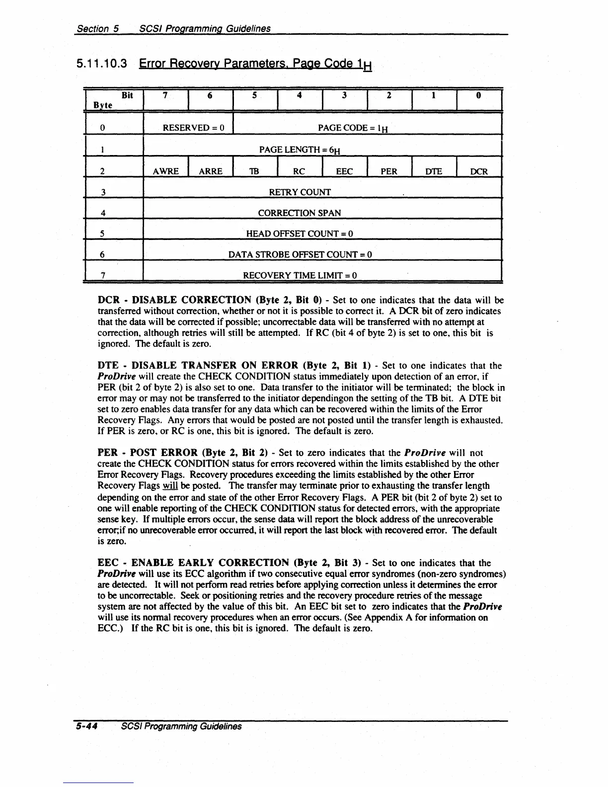 5.11.10.3 Error Recovery Parameters. Page Code 1 H