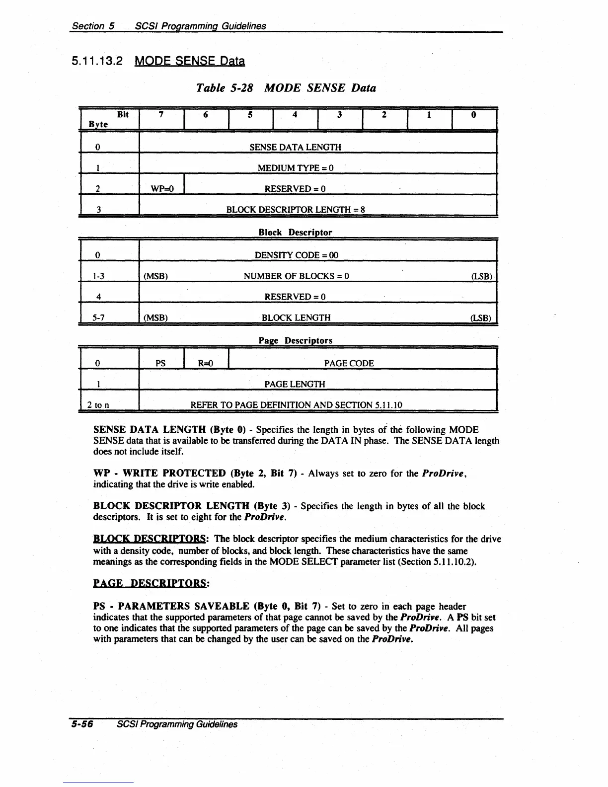 - WRITE PROTECTED (Byte 2, Bit 7) - Always set to zero for the ProDrive,