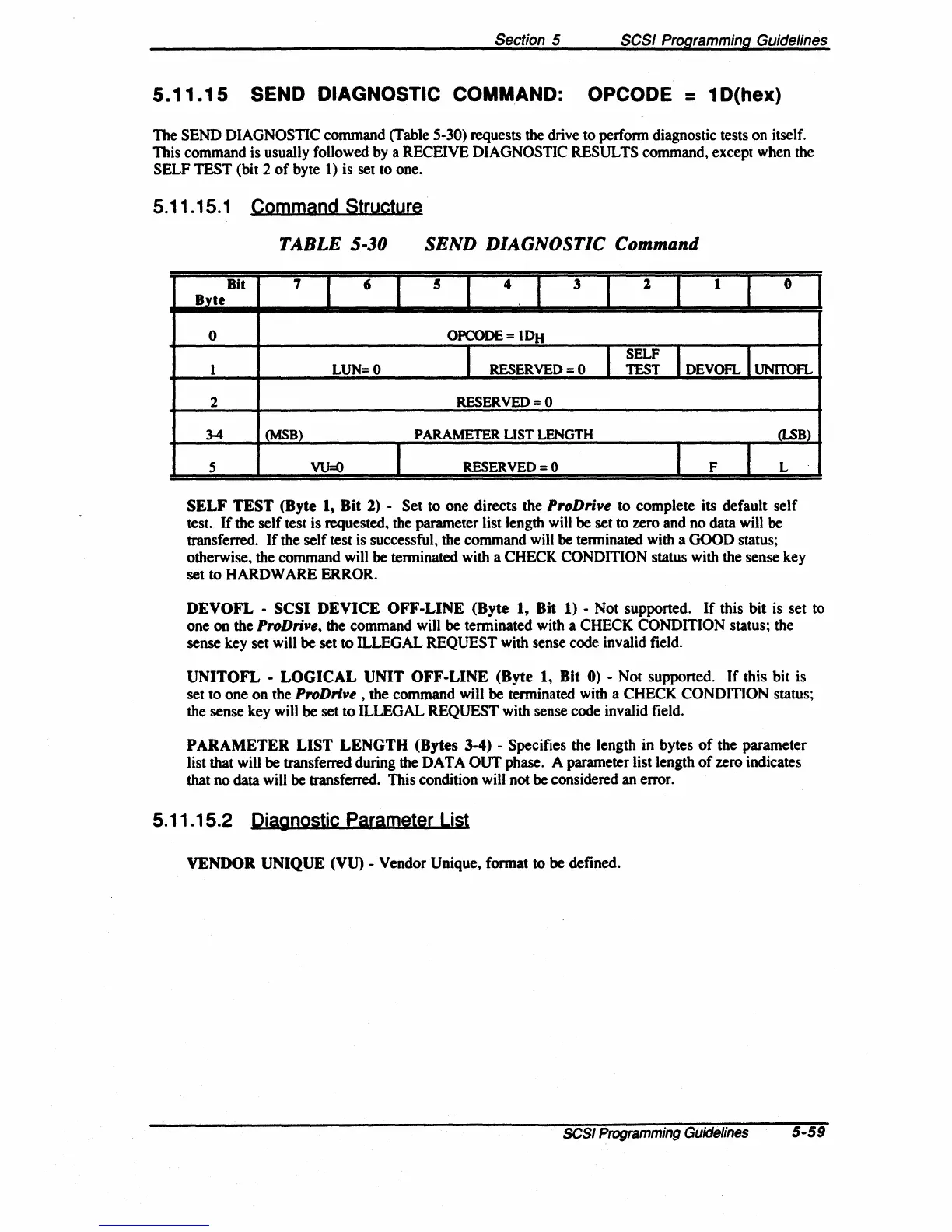 The SEND DIAGNOSTIC command (Table 5-30) requests the drive to perfonn diagnostic tests on itself.