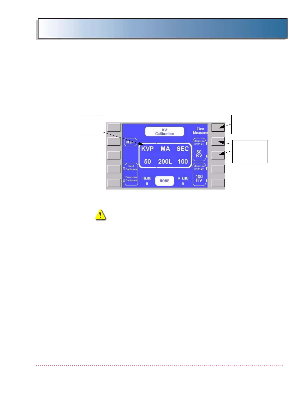 2. Verify 50 KVP appears in the center display box of the KV Calibration