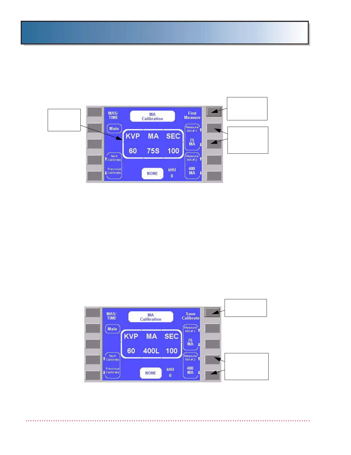 6. Press key next to the First Measure field to proceed to 400L mA calibra-