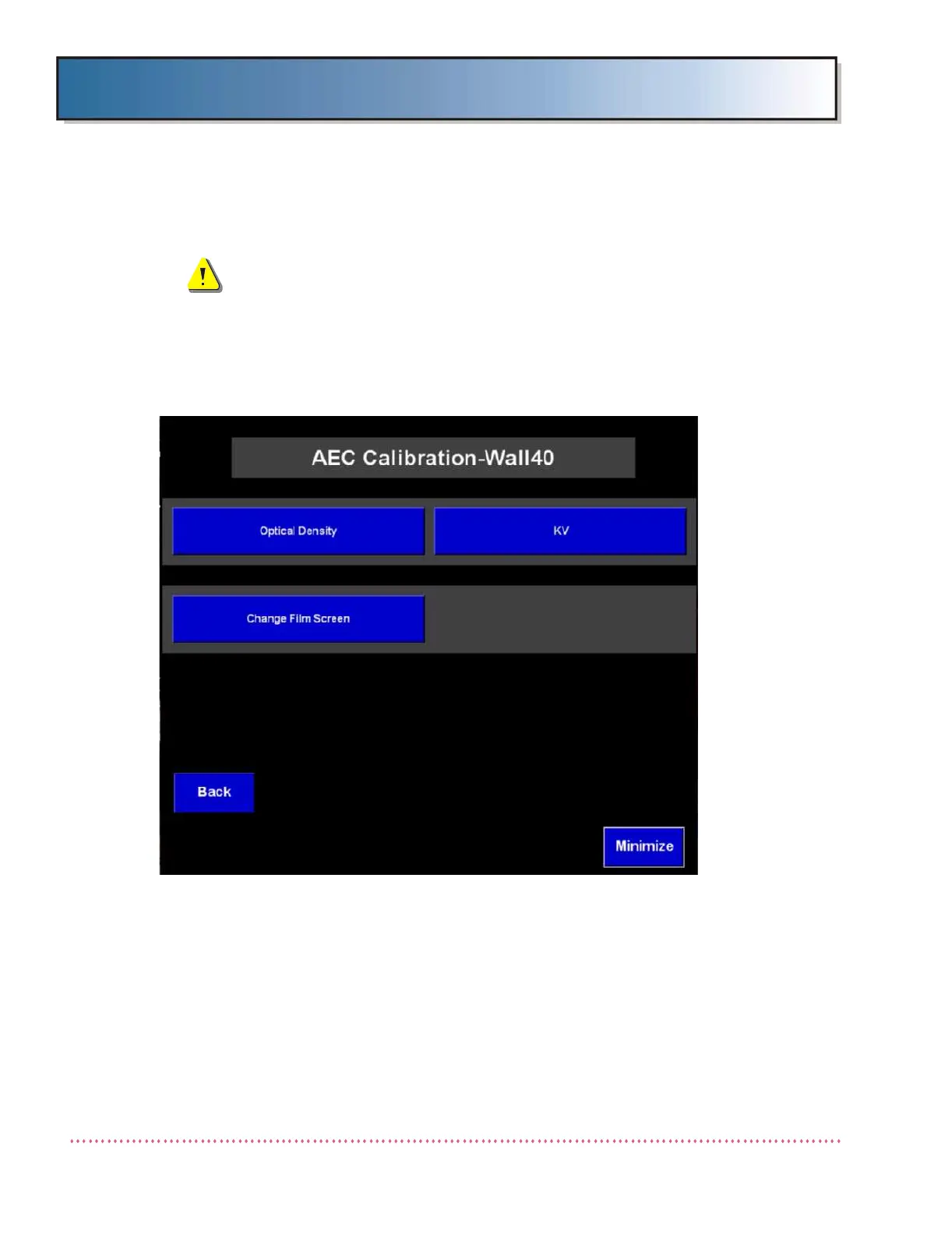 Following selection of a film/screen to calibrate, the AEC Calibration Menu dis-
