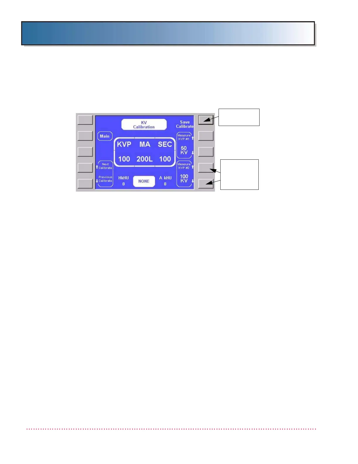 11. Press key next to the Save Calibrate field to save the 50 and 100 kV