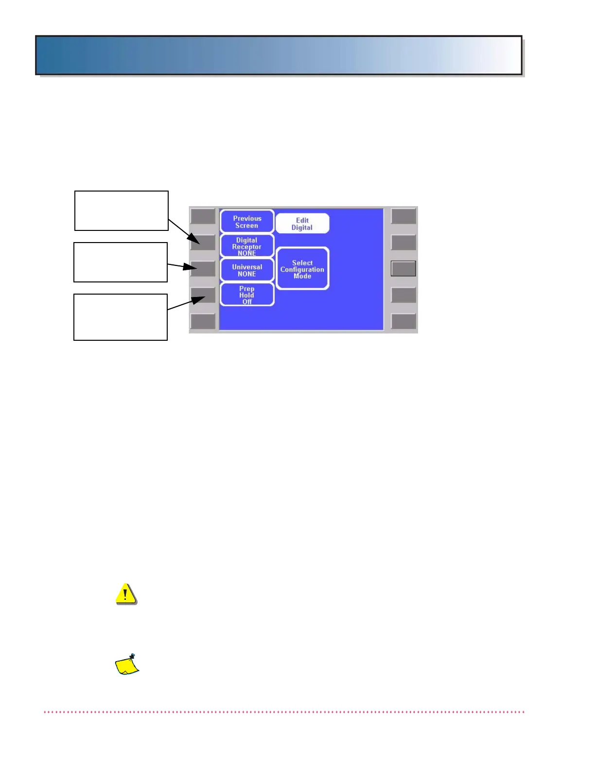 Software (QG-DIG-CXDI) Service Menu. Press the Select Receptor Con-