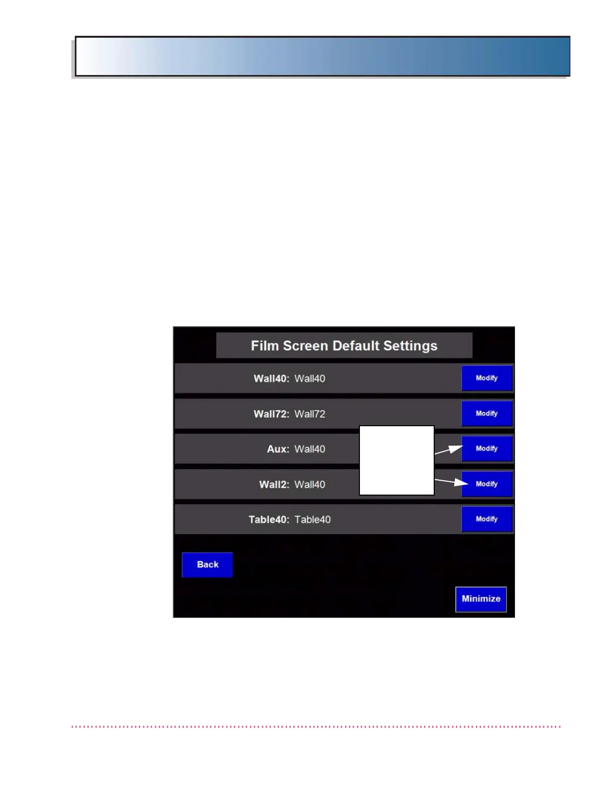 1. Wall40 setting: Press the MODIFY button adjacent to the Wall40 field.
