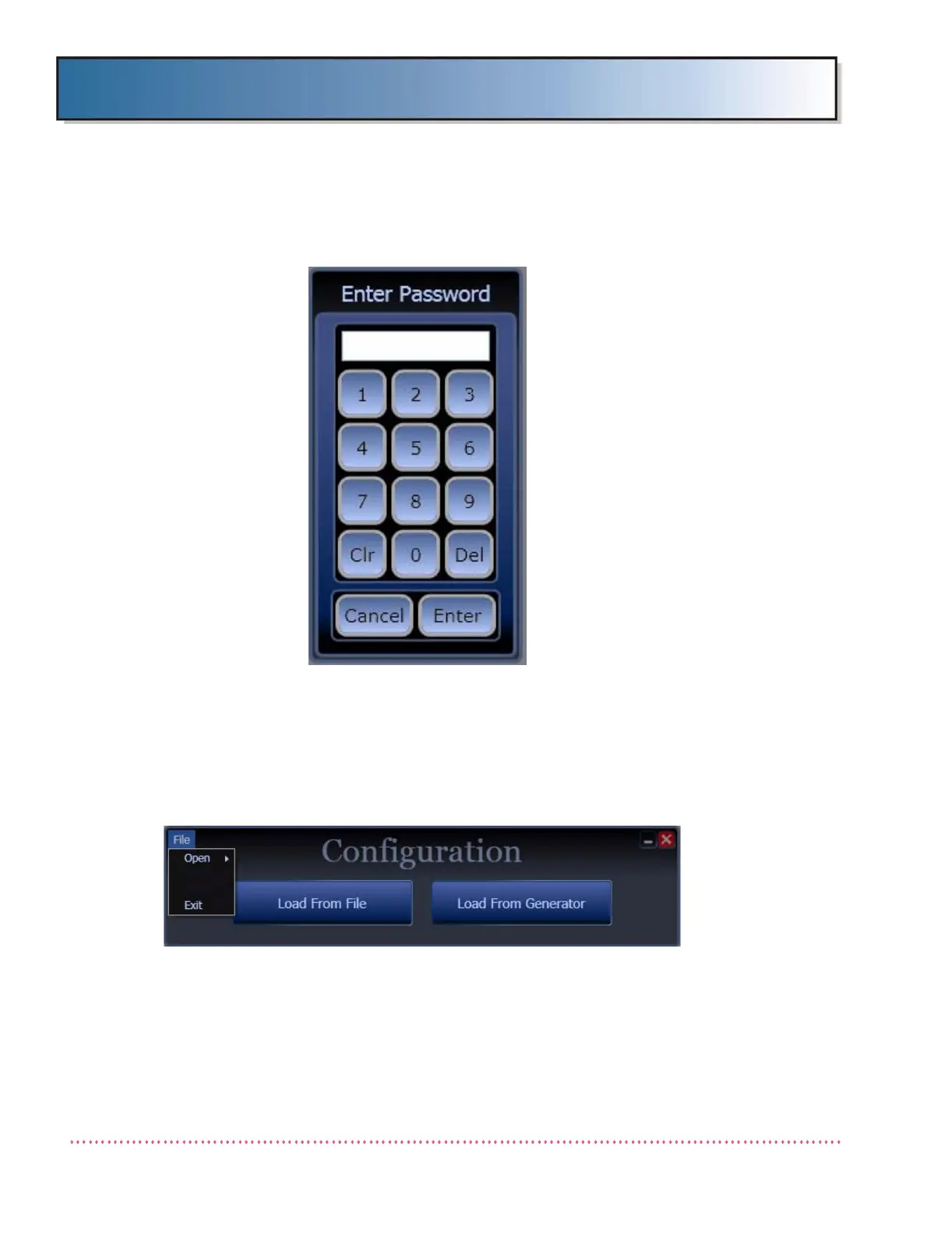 4. Upon validation of the password, the Load Configuration menu displays: