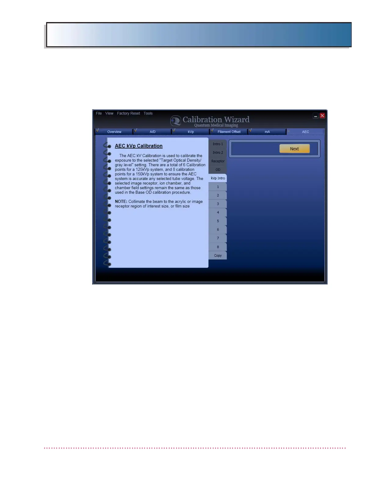 1. Access the AEC kVp Calibration Tab (shown below) and proceed as fol-