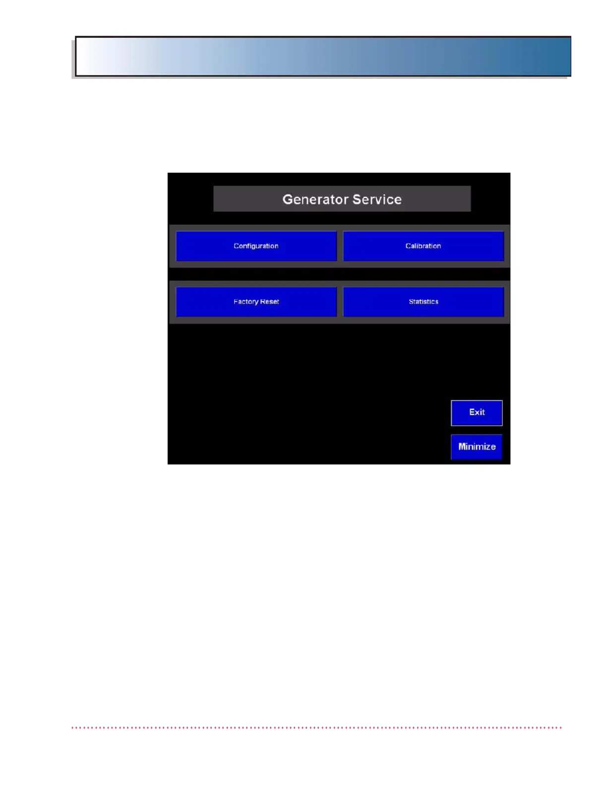 6. Press the Generator Service button. The Generator Service